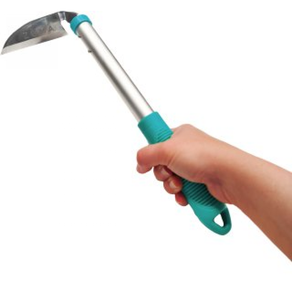 Ручная мотыга, обладающая удобным черенком, обеспечивает оптимальный контроль и комфорт при работе.