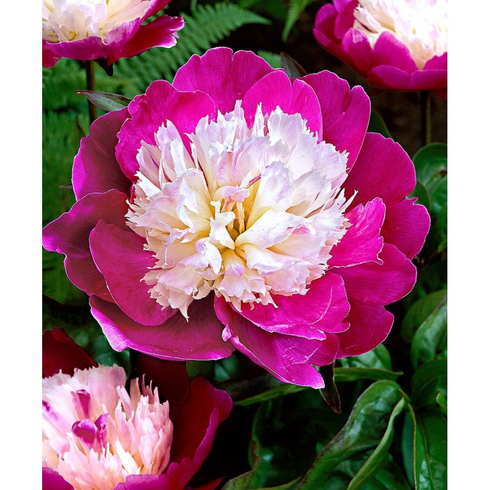 Изюминка сорта Santa Fay – двухцветные соцветия с бледно-розовой серединкой и пурпурными боковыми лепестками-юбочкой. Цветущее растение эффектно выделяется в саду, а срезка внесет в дом свежие яркие краски. Оттенок лепестков не выгорает на солнце. Прочные стебли с зеленой листвой не нуждаются в подвязке. В хороших условиях сорт растет и цветет десятки лет на одном месте.