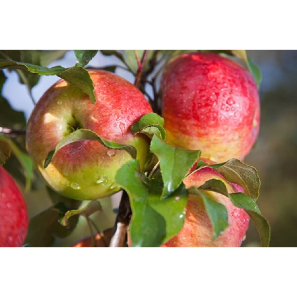 Яблоня Мельба - сорт летнего срока созревания. Так как Мельба не обладает высокой зимостойкостью, то выращивать данный сорт лучше всего в средней и южной полосе России. Но если обеспечить ей соответствующее укрытие на зиму и посадить с подветренной стороны, то можно выращивать в Сибири. Деревья достигают средней высоты и имеют смешанный тип плодоношения. Сорт раннеспелый начинает плодоносить уже на 3-4 год после посадки.. Созревание урожая происходит в конце лета (во второй половине августа). Сорт яблок Мельба можно использовать как в свежем виде, так и для любых домашних заготовок. Плоды имеют хорошую транспортабельность и лежкость(4-6 месяцев в прохладном месте). Плоды крупного размера, круглой формы, немного вытянутой вниз и слегка приплюснутой. Вес одного яблока может достигать 150 г. Окрас желто-зеленый, в период созревания с большим красным полосатым румянцем, занимающим половину поверхности плода. Кожица тонкая с легким восковым налетом. Мякоть яблока сорта Мельба белоснежная и очень сочная, а кисло-сладкий вкус имеет конфетный аромат. Молодые деревья плодоносят каждый год, а более старым свойственна периодичность плодоношения (раз в два-три года).