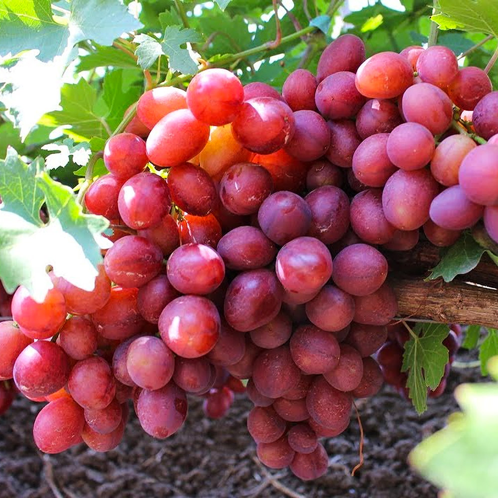 Дополнительно: Ягоды округло-удлиненной формы, овальные, очень крупные, массой до 10-12 г при нормировании нагрузки на лозу, мясистые, имеют пруиновый налет, в полной спелости могут приобретать лиловый оттенок. Вкус сбалансированный, гармоничный, присутствуют мускатные нотки. Формирует цилиндро-конические грозди. Плодоношение обильное.