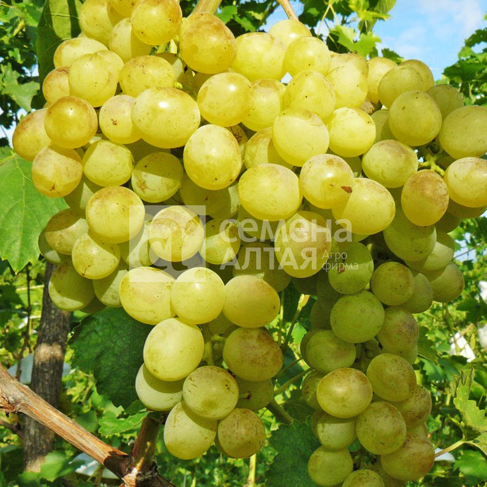 Сорт-чемпион по размеру и сладости ягод! Средне-сильнорослый куст. Грозди крупные, средней массой 531 г, конические, иногда свободной формы, умеренно плотные. Ягоды крупные, до 7 г, белые, с румянцем, мякоть хрустящая, гармоничного сладкого вкуса, кожица умеренно плотная, сахаронакопление 19-26%, кислотность 5-9 г/л. Плодоносных побегов 65-85%, для достижения максимального объема гроздей рекомендуемая нагрузка на лозу – 1,4-1,7. Рекомендуемая нагрузка на куст 35-45 глазков при длине обрезки плодовых лоз на 6-10 глазков.